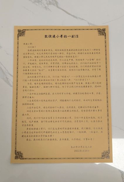 活动中,慰问组为中通、圆通、申通、韵达、百世、邮政、极兔、丹鸟、京东、德邦等10个快递公司的110名快递小哥发放了“暖心包”,勉励他们继续发扬“小蜜蜂”精神,坚定信心,用勤劳的双手创造幸福美好的生活,为沙湾经济社会发展贡献自己的力量。同时,嘱咐他们注意劳逸结合、出行安全,尤其是要做好疫情期间自身防护和冬季防寒保暖工作。