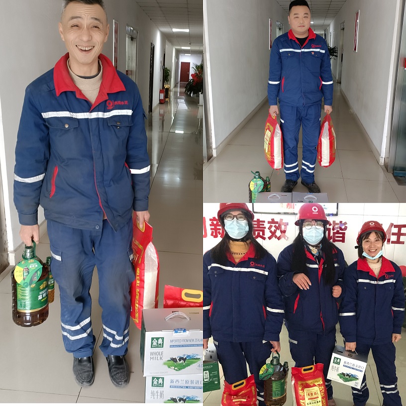 在工会和综合管理部的组织下,将公司和工会精心为大家准备物资送到全公司职工的手上,这些沉甸甸的福利不仅给大家带来了新春的祝福,也给每个人的心里带来了信心满满的希望和劲头员工脸上都洋溢着幸福的微笑。