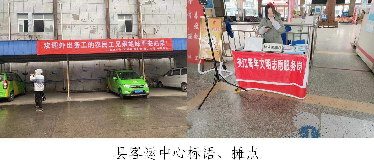 同时,组织志愿者在县客运中心游客出站口设置标语、摆设摊点,喜迎来自四面八方的返乡农民工并指路导向、提拿行李、答疑解惑、发送县内相关创业创新政策和法律知识,发送宣传资料500余份。