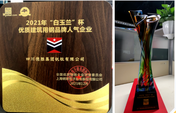 2月26日,在2022中国钢铁市场展望暨“我的钢铁”年会上,德胜集团再次荣获由全国优质钢铁企业评审委员会、上海钢联联合授予的2021年“白玉兰”杯优质建筑用钢品牌人气企业称号,这也是该公司连续六年荣获“白玉兰杯”荣誉。