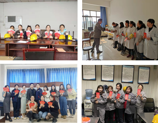 四川长鑫管业有限公司工会没有组织庆祝活动及安排生产一线的女职工休放假,但由各车间自行组织安排相关活动,并为每位“女神”送上100元慰问金,感谢广大女职工在过去一年的生产经营管理中,起早摸黑、勠力同心,为长鑫管业扩大生产规模、创立知名标牌、提高市场占有率和公司的发展壮大作出了重要贡献。乐山市洪旺金属制品制造有限责任公司工会为30余名女职工送上价值100元的购物卡一张;四川钢联科技有限公司工会报经党政同意,为每位女职工购赠了香皂、毛巾等实用物品。