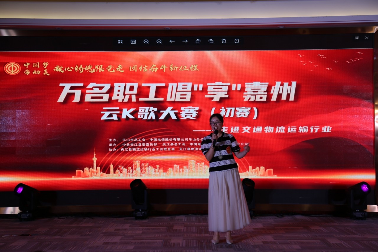 近日,由乐山市总工会、中国电信股份有限公司乐山分公司主办,中共夹江县委宣传部、夹江县总工会、中国电信股份有限公司夹江分公司承办,夹江县物流运输行业工会联合会、夹江县物流运输协会协办的“中国梦·劳动美——凝心铸魂跟党走团结奋进新征程”乐山市“万名职工唱‘享’嘉州”云K歌初赛走进夹江交通运输行业比赛成功举行,来自全县物流运输行业的21名参赛选手登上舞台,一展歌喉。