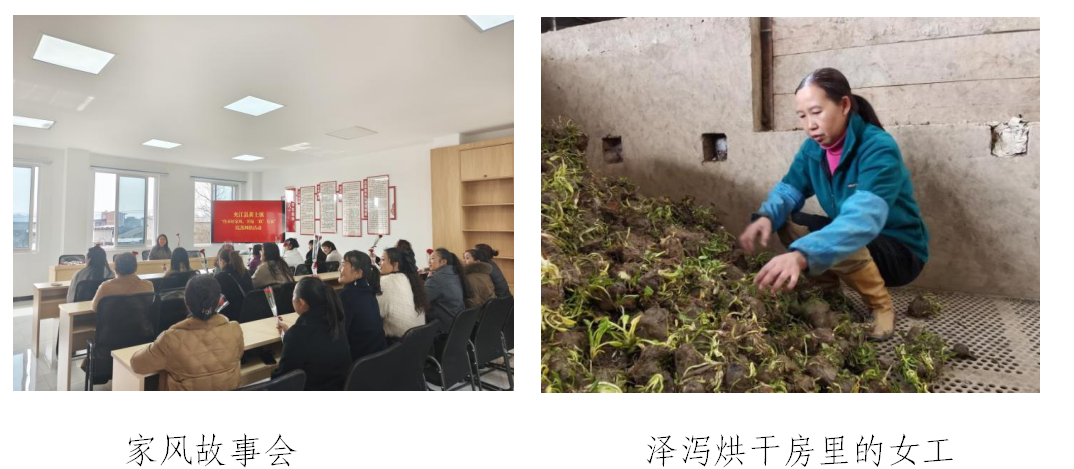在红光村村委会的院落里,三十余对母子的手掌正托起千年漆艺的当代新生。非遗传承人指尖流转的彩漆,在孩子们清澈的眼底化作流动的山水。当刻着“自强”二字的陶艺杯盏被送入窑炉,刘大姐对女儿轻声说:“这是夹江匠人传了百年的精气神。”此时,家风故事会也正薪火相传,返乡创业的杨姐拿出一把豁口的旧镰刀,“奶奶用它在崖坡上开出一垄垄茶园,她说‘人勤地不懒’”,她讲述着如何带着这把镰刀的精神闯市场。村史文化墙上新展的50余张照片引发村民驻足—镜头里,泽泻烘干房里的女工人挥汗如雨,茶山上的采茶娘指尖翻飞如蝶。这些定格在乡村振兴一线的“她身影”,与流淌的家风智慧交相辉映,让几代人叠合在陶泥上的掌纹,成了穿越时空的奋斗宣言。