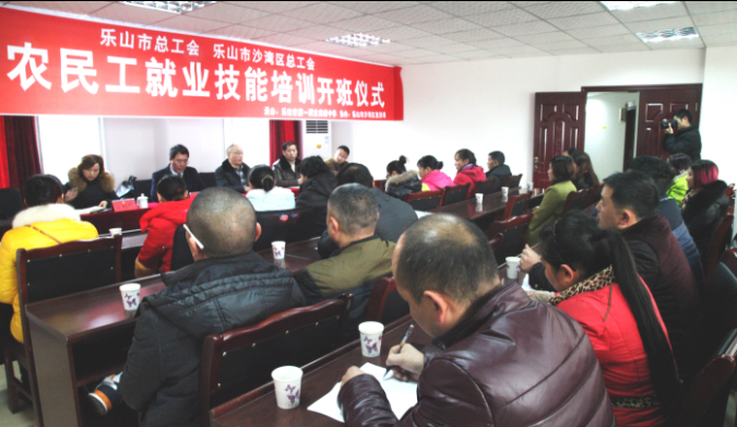 12月24日,由乐山市总工会、沙湾区总工会、沙湾区旅游局主办,乐山市第一职业高级中学承办的“沙湾区农民工就业技能培训”在沙湾区绥山社区二楼会议室开班。乐山市总工会党组成员、经审委主任程学铭,区委常委、区总工会主席赵彬,乐山市第一职业高级中学校长杨兵参加了开班仪式。