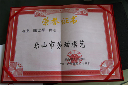在民建镇红旗村,市总工会帮扶工作组看望慰问了陈世平的家属江名仙母女,了解其家庭生产生活情况和子女就学就业情况;宣读了乐山市人民政府《关于追授王川等七名同志为乐山市先进工作者和劳动模范的决定》,颁发了追授陈世平为乐山市劳动模范的荣誉证书;发放了慰问金和油、米、面等慰问物资;勉励家属化悲痛为力量,努力克服困难、战胜困难。
