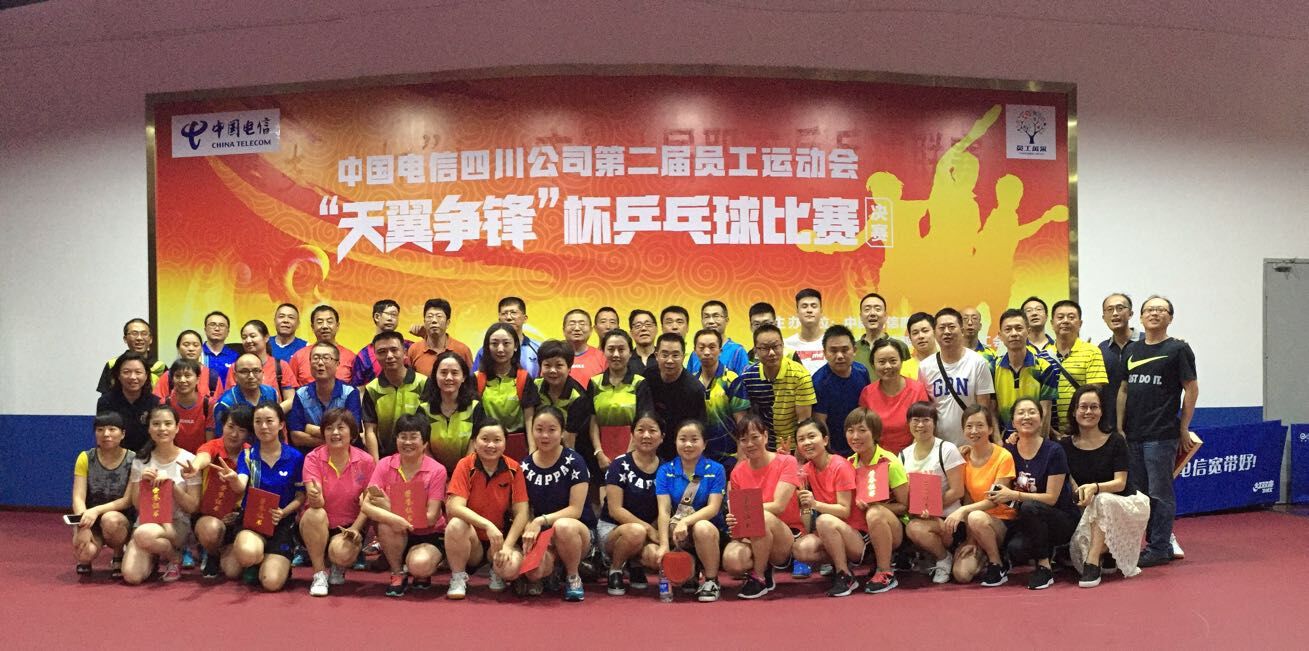 7月7日至8日,四川电信“天翼争锋”杯首届员工兵乓球总决赛在乐山市职工文体活动中心举行,来自川中片区、川北片区、川东片区、川南片区、川西片区近60名在5月片区赛中胜出的运动员参加本次总决赛。
