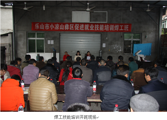为进一步帮助彝区建档贫困农民工拥有一技之长,依靠自身技术实现就业或再就业,促进家庭增收。在市总工会关心支持下,2016年12月26日上午,金口河区总工会与乐山市计算机学校在区永和镇新民村2组活动室内举行乐山市小凉山彝区促进就业技能培训焊工班开班仪式。乐山市计算机学校谢老师主持会议,金口河区总工会、以及培训班老师以及学员共计50余人参加了开班仪式。