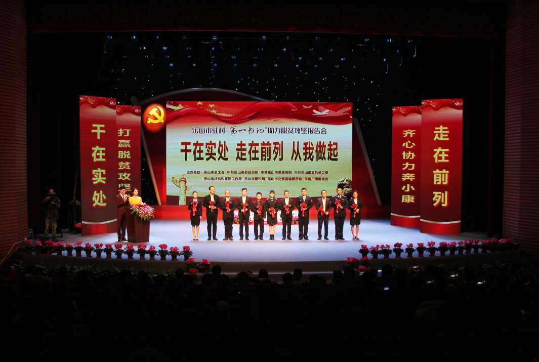 为充分展示我市驻村“第一书记”艰苦奋斗、无私奉献、攻坚克难的时代风貌和脱贫攻坚工作实绩,奋力实现我市“十三五”脱贫攻坚目标,1月10日,由市总工会牵头,市扶贫移民局、市委组织部、市委宣传部、市直机关党工委、市国税局、市交委、乐山广播电视台联合举办的乐山市驻村“第一书记”助力脱贫攻坚报告会在乐山大佛剧院隆重举行。市委书记彭琳,市委副书记、市长张彤,市人大常委会主任赖淑芳,市政协主席易凡,市委副书记、市总工会主席田文,市委常委、秘书长高鹏凌,市人大常委会副主任赵田,副市长伍定,市政协副主席刘淑玉,市检察院检察长龚毅出席会议。市人大常委会、市政府、市政协秘书长,市委、市人大常委会、市政府、市政协联系脱贫攻坚工作的副秘书长,各县(市、区)党委或政府分管负责同志,市级各部门和在乐高校负责同志,驻村“第一书记”代表,农村基层干部代表,市级各部门干部职工代表共计550余人参加会议。