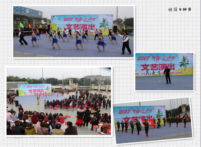 为营造欢庆、祥和、快乐的2017年新春气氛,团结疑聚夹江县广大劳动者,为建设幸福美丽新夹江增添正能量,2月24日,夹江县总工会联合县退休干部职工活动中心,在滨江广场举办了2017年“春之声”文艺演出。