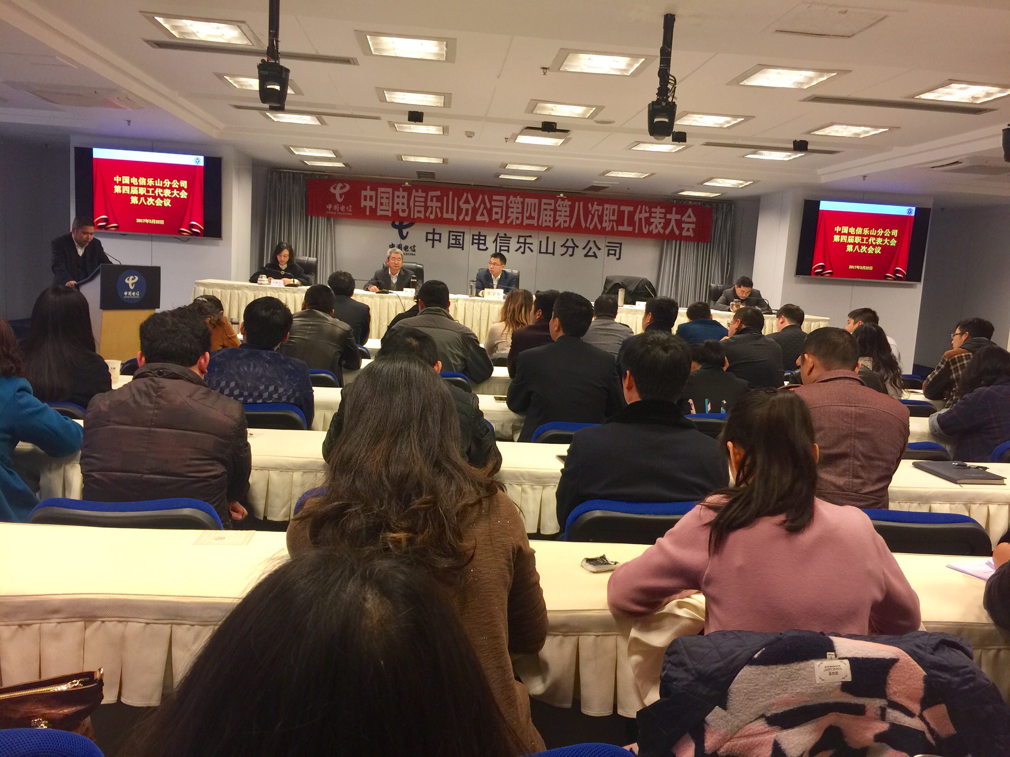 2017年3月22日,乐山电信分公司召开第四届职工代表大会第八次会议,来自全市现业、区县分公司92名职工代表参加会议。