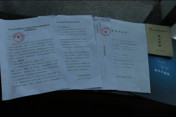 据悉,沙湾区总工会已连续二年开展企业劳动法律风险评估工作,购买第三方四川伟旭律师事务所服务,通过“一通知一函一协议”(即 :企业劳动法律风险评估通知;企业劳动法律风险评估的函;企业劳动法律风险评估工作保密协议)进入企业,“三书一报告”(企业劳动法律风险评估等级评定书;企业劳动法律风险预警温馨提示书;企业劳动法律风险管控措施建议书、企业劳动法律风险评估报告)收官的形式,完成企业风险评估服务流程。目前,通过两天深入细致走访,已完成“一通知一函一协议”的前期调查工作。