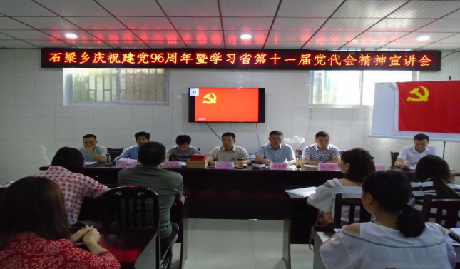 6月27日,王嘉骏同志率县卫计局、县文体广新局、县气象局、联通公司等相关单位负责人到石梁乡学习贯彻落实省第十一次党代会精神。石梁乡党政班子成员及全体干部职工、村四职干部、乡属事业单位主要负责人、部分党员代表和建档立卡贫困户代表等100余人参加会议。