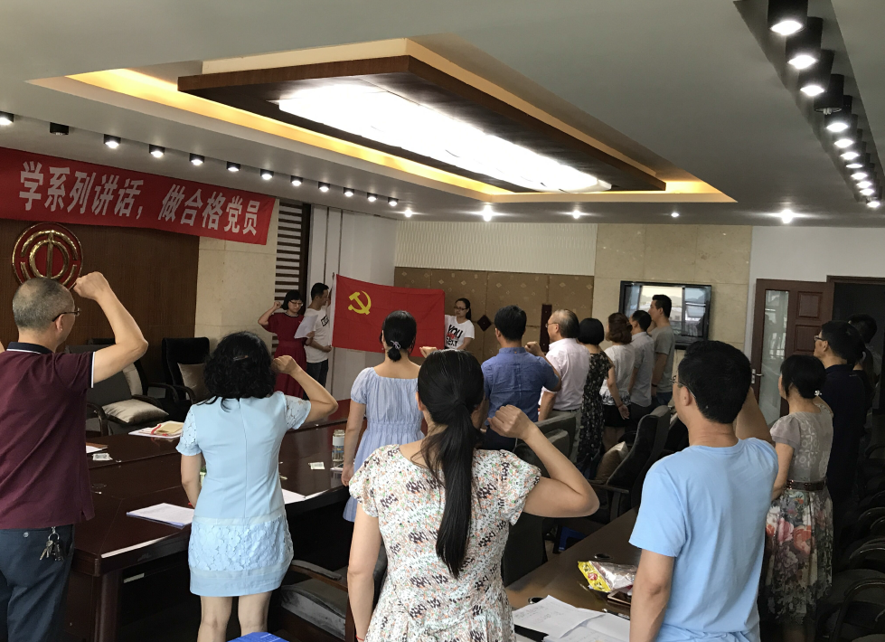 “我志愿加入中国共产党……”在鲜艳的党旗面前,所有党员举起右手庄严宣誓,铿锵有力的誓言共同表达了对党、对人民的无限忠诚,坚定了做人民公仆、为人民服务的理想信念。宣誓结束后,党员们分党小组交纳了6月的党费。