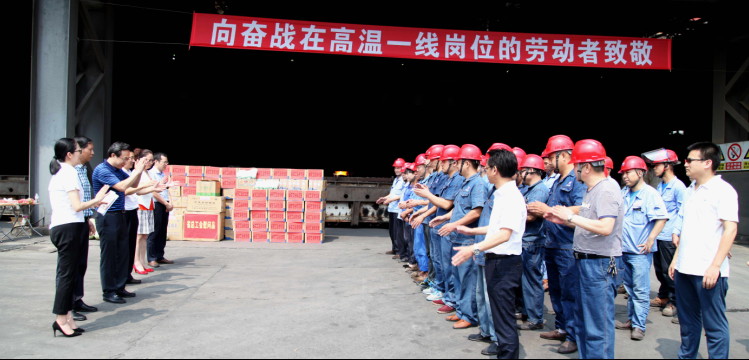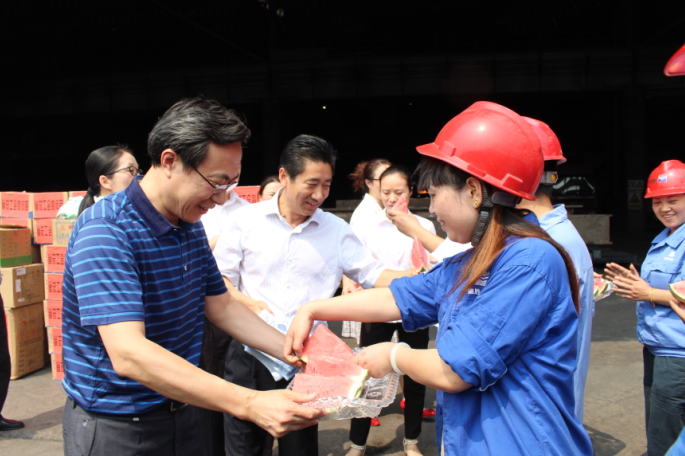 7月27日,时值酷暑高温三伏天,四川省总工会党组成员、副主席李茂林率队来到德胜钒钛公司,为高温天坚持工作的一线职工们,送去防暑降温清凉物品和工会“娘家人”的关怀。市总工会党组书记、常务副主席王学东、沙湾区委书记袁仕伦和区委常委总工会主席赵彬陪同参加送清凉活动。