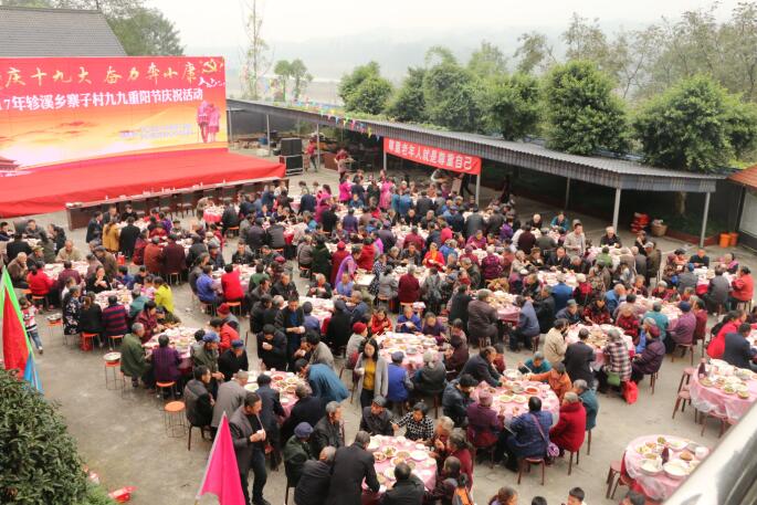 活动伊始,区委常委、统战部部长赵彬发表了热情洋溢的致辞,区党校常务副校长带领大家共同学习了十九大会议精神,区总工会驻寨子村脱贫攻坚工作组也向全村老年朋友们致以了节日的问候和美好的祝愿!最后,老年协会准备的节目把活动推向了高潮,丰富多彩的文艺节目乐得老人们合不拢嘴。大家脸上始终洋溢着幸福的笑容,尽情享受着活动带来的快乐。40桌坝坝宴摆出来了,老人们吃在嘴里,甜在心里,一个个脸上都乐开了花。这次活动的成功举办,营造了欢乐祥和的节日氛围,展示出广大老年朋友健康快乐的时代风采和老有所乐的精神面貌。