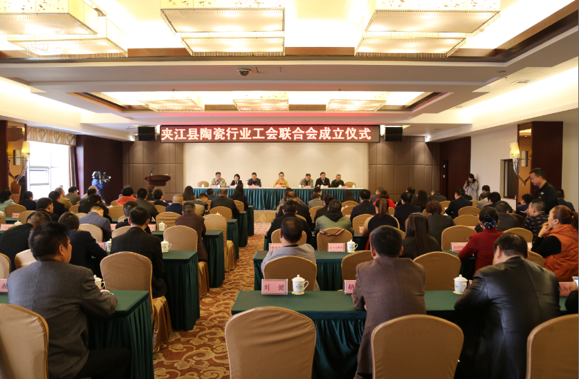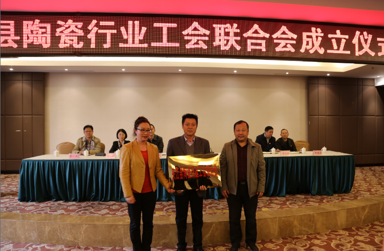 会议由县委常委、统战部部部长董明龙主持,县委常委、组织部长、县总工会主席刘永康宣读了《夹江县总工会关于成立夹江县陶瓷行业工会联合会的批复》。根据《中华人民共和国工会法》、《中国工会章程》的相关规定,经县总工会研究决定,同意成立“夹江县陶瓷行业工会联合会委员会”。根据夹江县陶瓷行业工会联合会会员大会选举结果,工会委员会委员由宁安全、刘健、江毅、刘钊、余杨、汪绪发、周学强、胡灵、李文仪等九位同志组成,宁安全同志任工会主席,刘健、江毅同志为副主席。