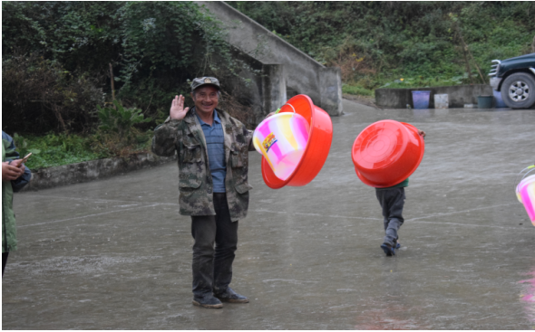 当天,为西泥沟村全村296户贫困户和非贫困户发放了彝族年实用物品价值1.2万元的300个胶盆和300个水桶。