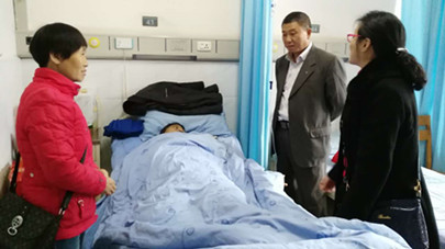 在医院里,五通桥区总工会姜主席关切地询问了张贤荣的康复情况,详细了解了他的近况以及亟待解决的生活困难,鼓励他要以积极乐观的心态面对生活、战胜病魔,并表示劳模们默默无闻为社会做出巨大的贡献,我们应当竭尽所能为他们排忧解难,工会就是职工的家,有困难一定要及时与工会沟通反映。最后,区总工会为其送上价值300元的慰问品,并祝其早日康复。