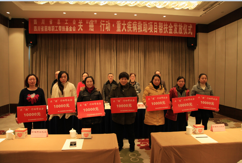 四川省总工会、省困难职工帮扶基金会关“癌”行动•重大疾病救助项目帮扶资金发放仪式在乐山举行