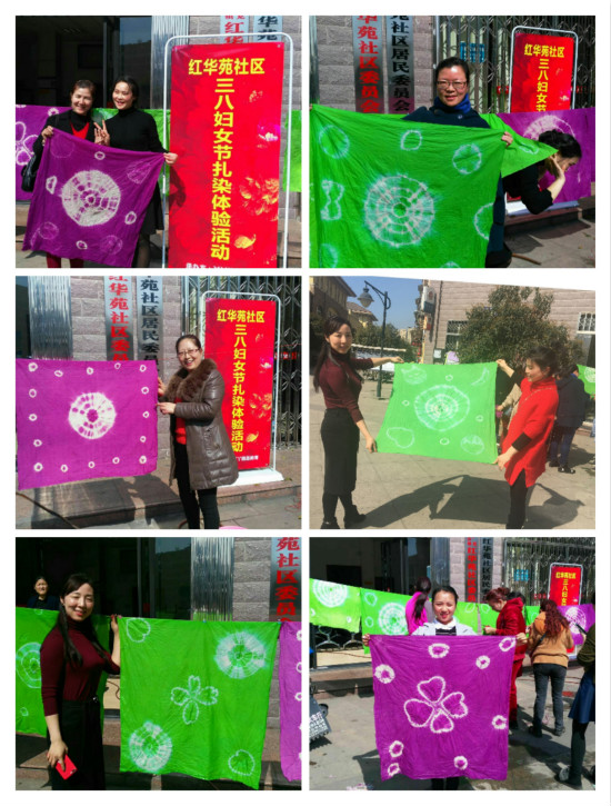 为了丰富辖区女性朋友文化生活,红华苑社区在 “三八”国际妇女节开展了一场别开生面的手工扎染体验活动。
