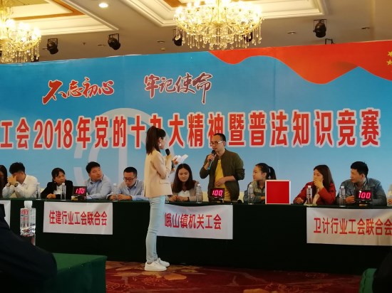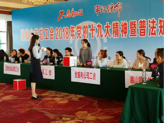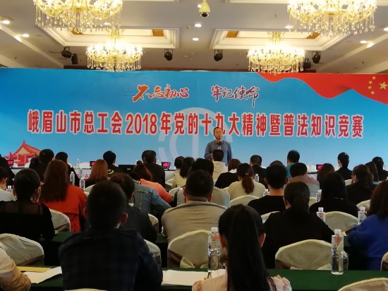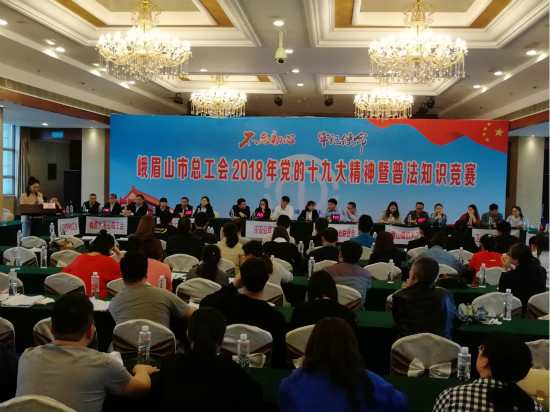为庆祝“五·一”国际劳动节,进一步学习宣传贯彻党的十九大精神,推动工会普法宣传教育活动的深入开展,不断提高广大职工依法维护自身合法权益的能力和水平,峨眉山市总工会于24日、25日组织开展了全市党的十九大精神暨普法知识竞赛活动。来自全市各行业工会、镇乡工会联合会,各企事业单位工会积极响应、精心组织。