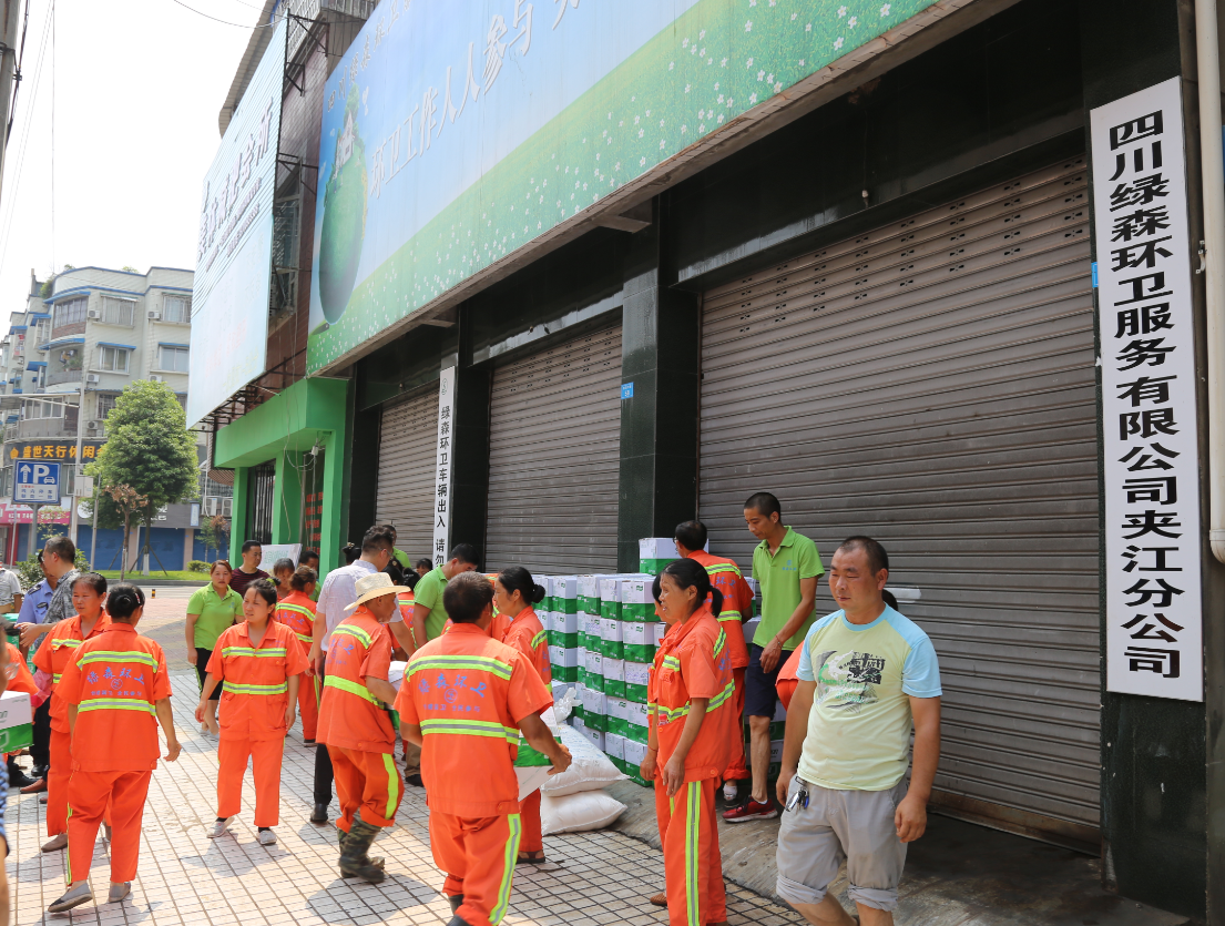 夹江县委常委、县委组织部部长、县总工会主席刘永康参加了“送清凉”活动启动仪式。在绿森环卫公司的启动仪式上,刘永康对高温一线的职工不畏高温、忠于职守、辛勤工作表示感谢,希望他们在坚守岗位的同时注意防暑安全,适当休息、爱护身体,以更好的状态投入到创建国家卫生县城工作中,并强调全县创建国家卫生县城工作进入攻坚期,广大环卫职工任务更加艰巨,责任更加重大,使命尤其光荣。创卫是一场持久战、攻坚战,大家要有信心和毅力,始终坚守岗位,尽心尽力,把本职工作干好,把各自负责的区域卫生维护好,让夹江这个城市更加干净美丽,让我们生活的环境更加美好,共同努力把夹江建设成宜居宜业宜游的人居典范城市。同时要求全县各级各部门、各企事业单位,要切实做好防暑降温工作,改善夏季高温一线作业职工的生产、生活环境,有效预防、控制高温作业引发的中暑和各类事故,保障广大职工的身体健康,及时把党和政府的关怀送给奋战在高温一线的职工,帮助职工度过一个安全、健康、清凉的夏季。启动仪式后,慰问组向绿森环卫公司、岷江环卫公司、双江环卫公司和铭帝铝业送去了矿泉水、藿香正气水、白糖、茶叶等防暑降温物资。