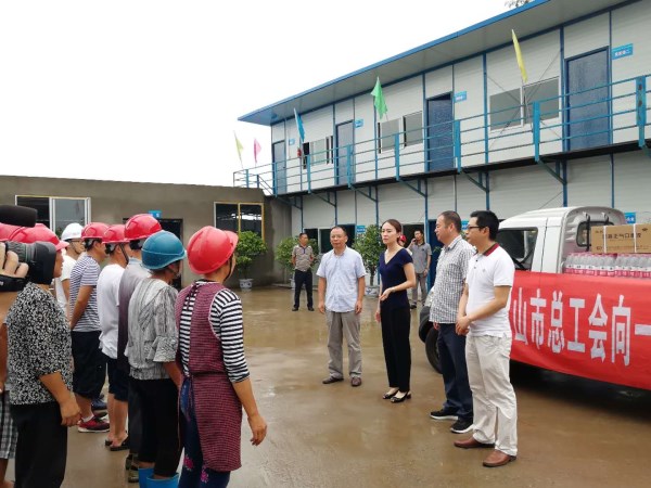 8月2日,峨眉山市总工会主席吴利平带领市总工会干部,对冶炼业、加工制造企业、环卫工人、建筑工人、交通警察等一线户外劳动者进行慰问。