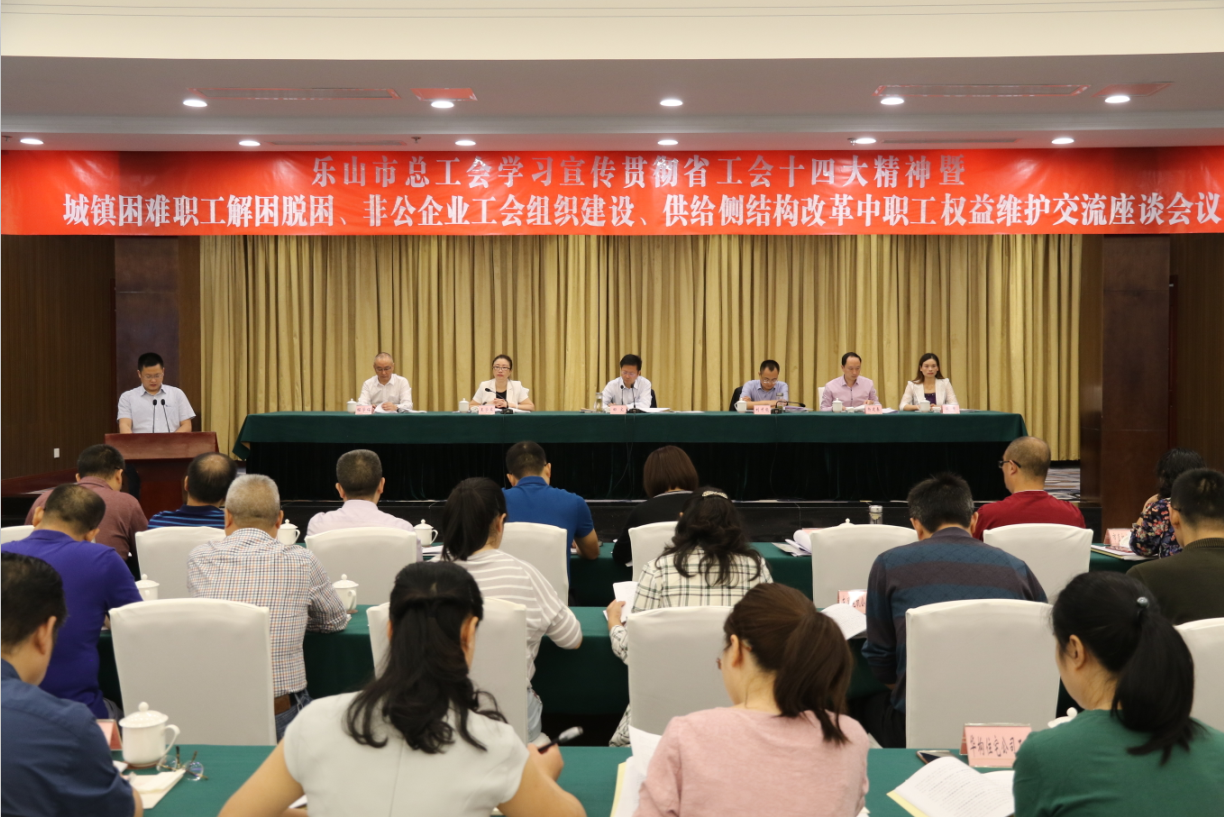 9月20日,乐山市总工会召开学习宣传贯彻省工会十四大精神暨城镇困难职工解困脱困、非公企业工会组织建设、供给侧结构改革中职工权益维护交流座谈会议。乐山市委副书记、市总工会主席田文主持会议,并作重要讲话。市总工会党组书记、常务副主席王学东同志学习传达四川省工会第十四次代表大会精神。市总工会班子成员,11个县(市、区)委常委、总工会主席和常务副主席,乐山高新区工会,峨眉山景区、乐山大佛景区管委会工会,市级系统工会主席,部分市属基层工会、省产业工会和市总工会联系点工会主席,市总工会机关中层以上干部,共计130余人参加会议。