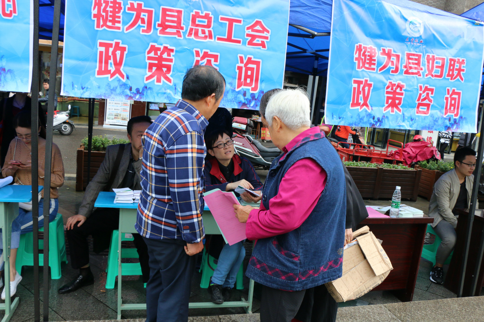 招聘会现场,县总工会、县人社局等部门还设立了政策和法律咨询台,积极向广大群众宣传培训政策,开展法律咨询,免费介绍职业,推介创业项目。