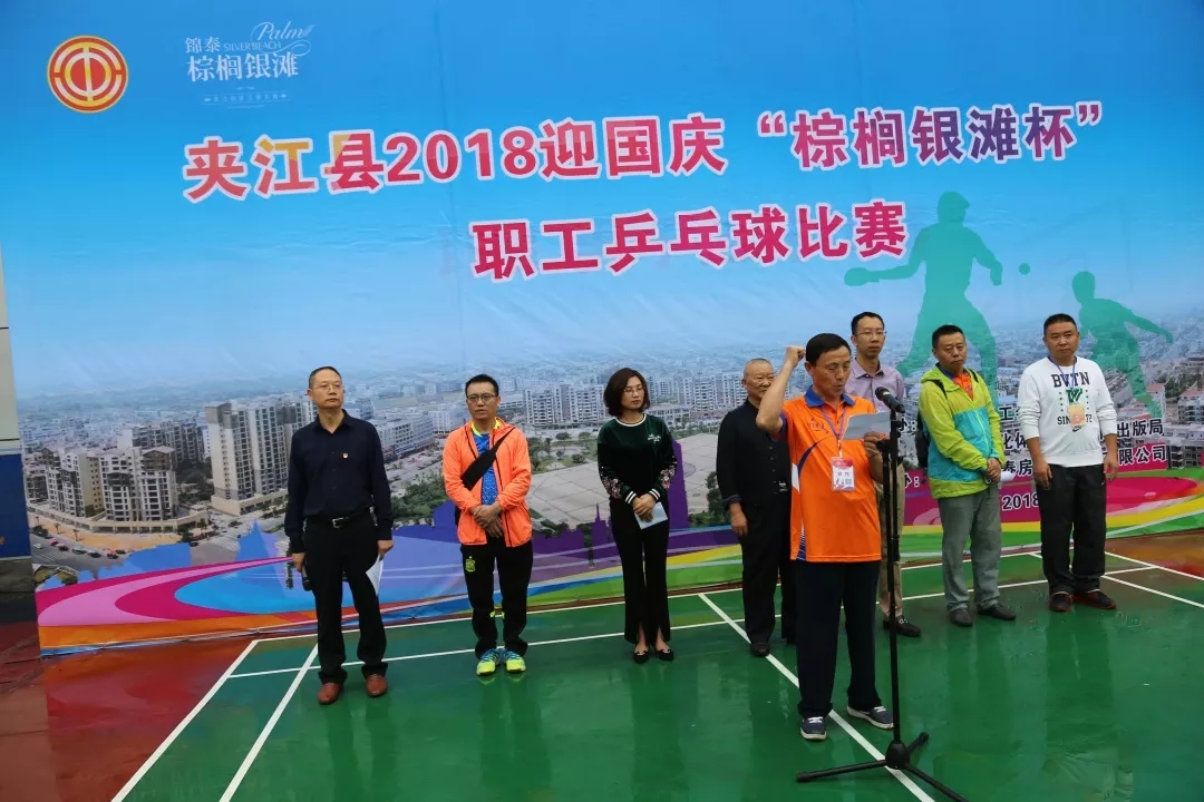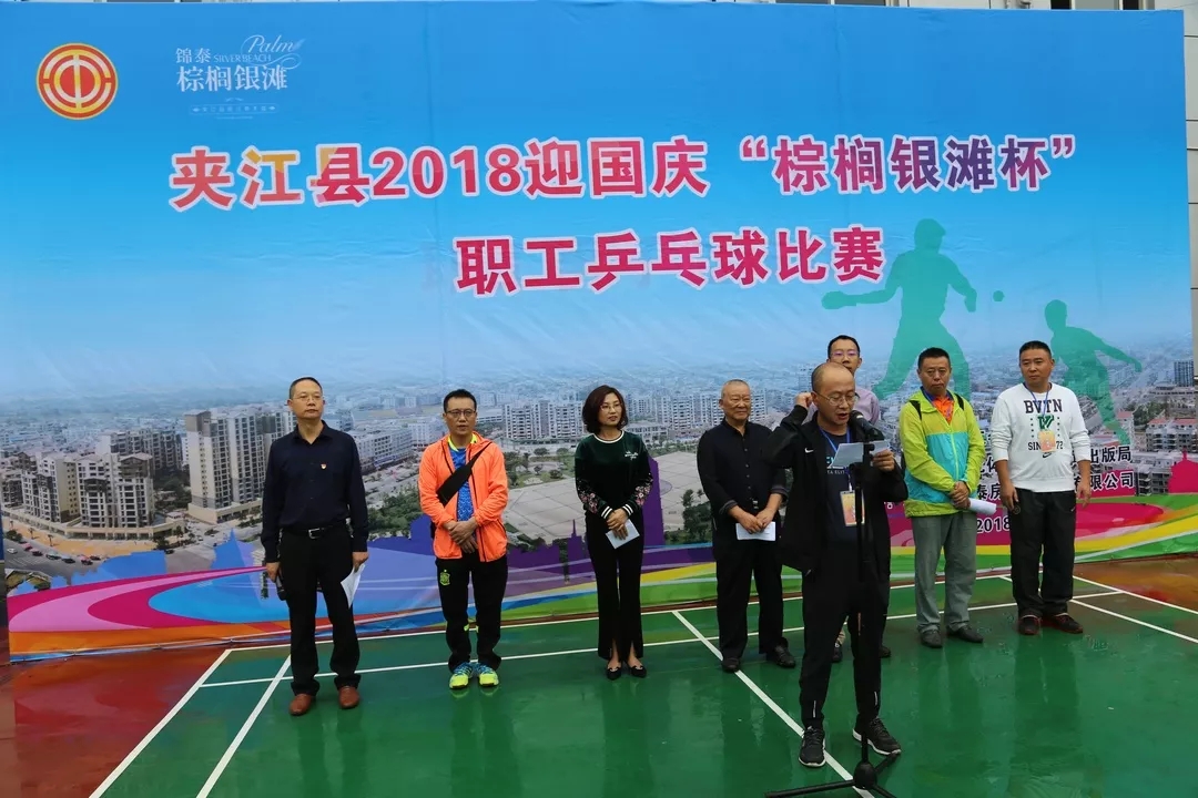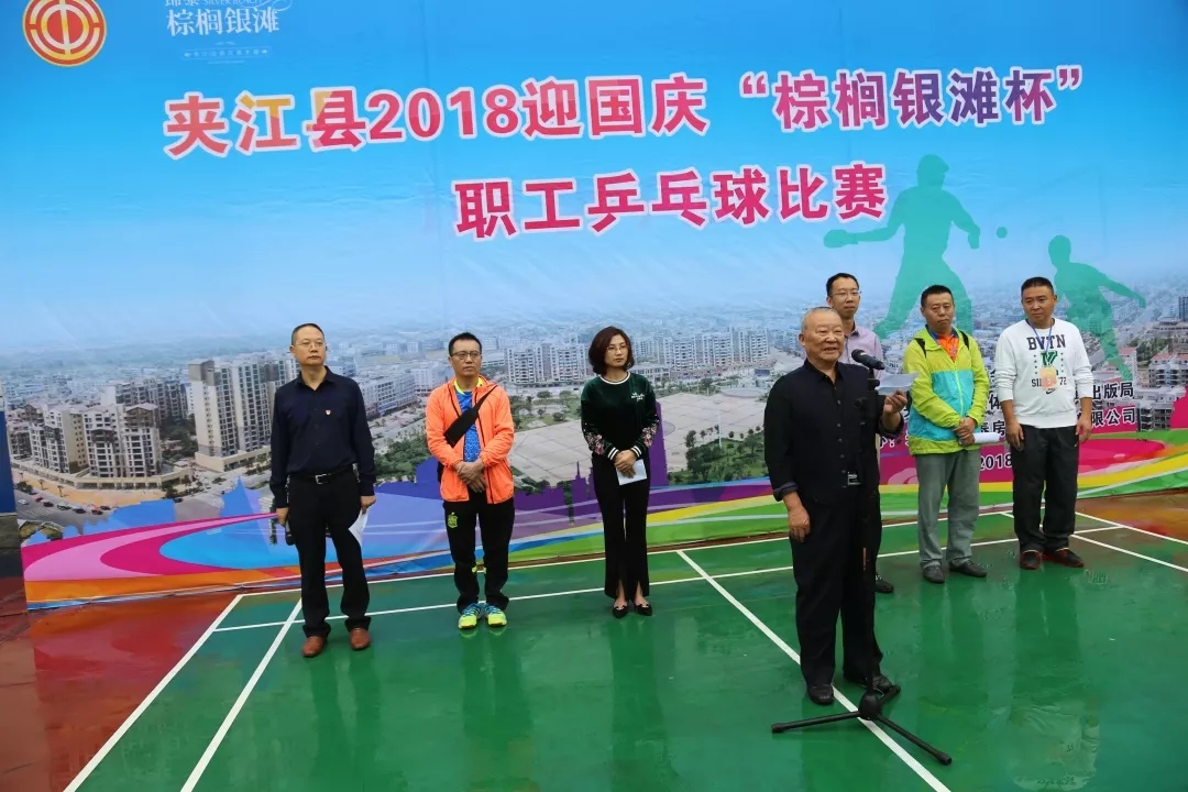 9月27日至29日,为深入学习宣传贯彻党的十九大精神,隆重庆祝中华人民共和国成立69周年,凝聚广大职工群众力量,积极推进全县乒乓球运动的发展,增强人民体质,夹江县举行2018迎国庆“棕榈银滩杯”职工乒乓球比赛。