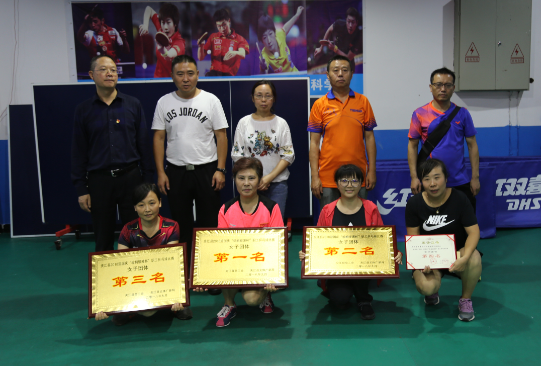 经过三天激烈角逐,中国核动力院四所代表队、夹江县老体协一队、夹江县教育局代表队分别荣获男子团体冠、亚、季军;县老体协代表队、县教育局代表队、乐电夹江公司代表队分获女子团体第一、第二、第三名;来自县教育局的郑希在男子单打比赛中夺得冠军;来自县卫计局的唐沁叶获得女子单打第一名。县政府办代表队、吴场镇代表队被评为体育道德风尚运动队;夹江县公安局、夹江县锦泰房地产开发有限公司获优秀组织奖;漹城镇肖全、31656部队朱林等21名运动员被评为体育道德风尚运动员。