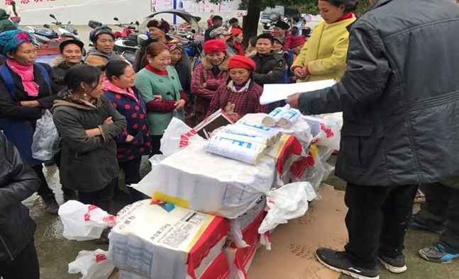 县总工会为西泥沟村的300户贫困户和非贫困户发放了价值6600元的挂面,每户10斤。