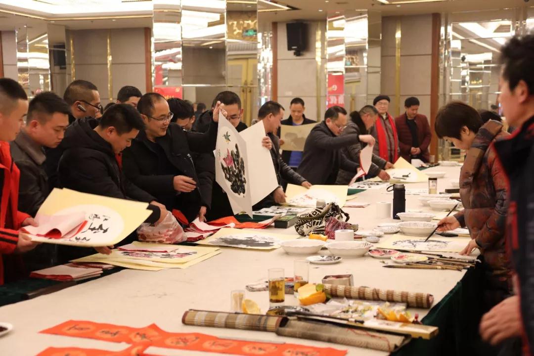 会上,书画家还向返乡农民工赠送了字画作品。