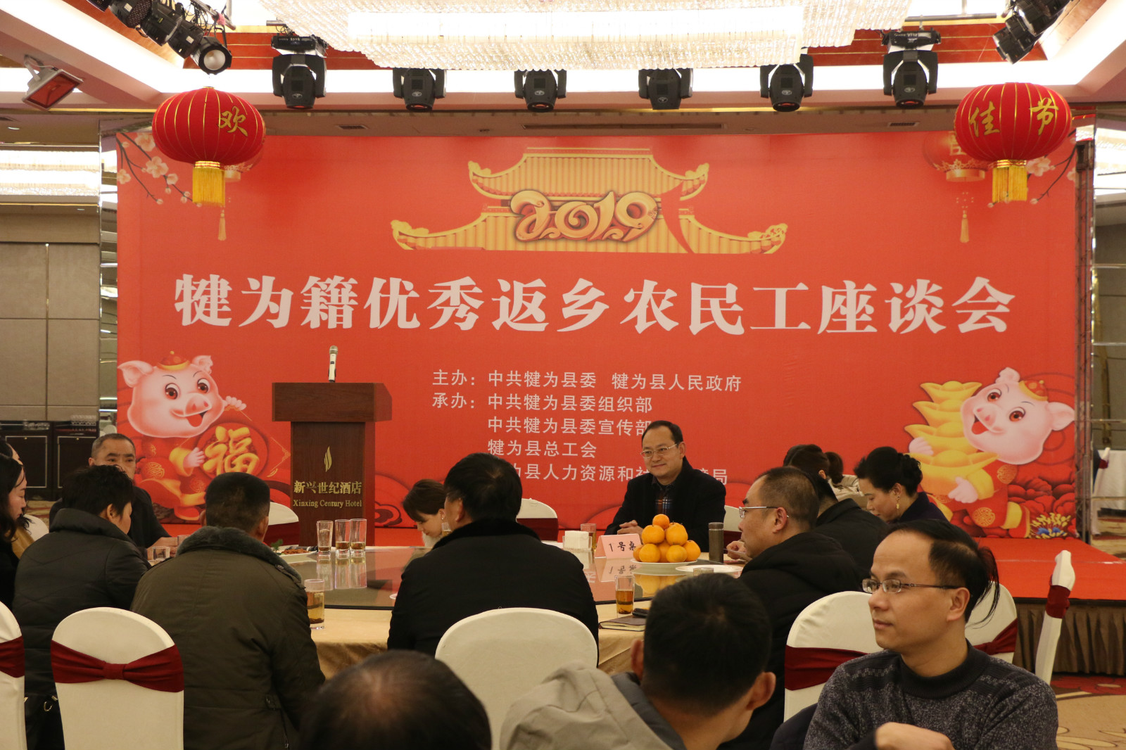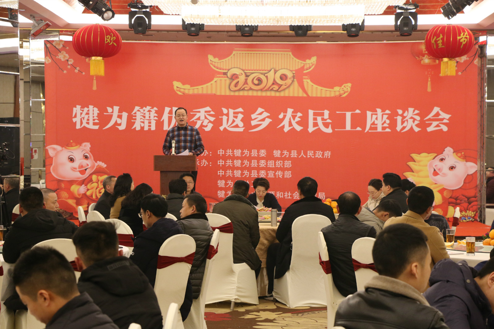 为全面贯彻落实省委、省政府关于加强农民工服务保障十六条措施文件精神,犍为县于2019年1月25日召开了犍为籍优秀返乡农民工座谈会。此次座谈会由县委、县政府主办,县委组织部、县总工会等部门承办,县委常委、组织部长王颜兰,副县长陈光勇出席座谈会,县级有关部门负责人,优秀返乡农民工代表、返乡基层组织骨干代表、返乡创业人才代表等共计180余人参加了座谈会。
