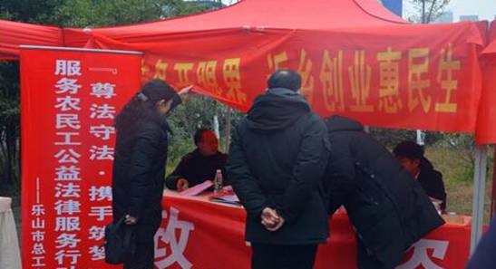 (乐山市职工志愿者向返乡农民工提供就业创业政策咨询)
