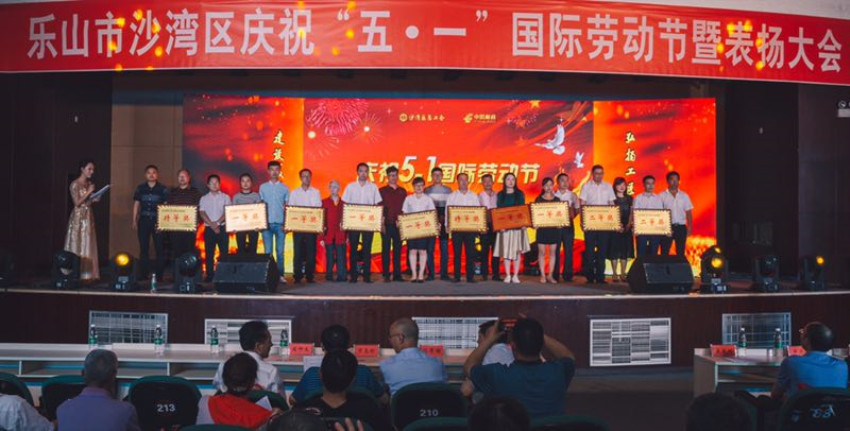 为庆祝“五一”国际劳动节,大力弘扬劳模精神、劳动精神、工匠精神,4月30日,乐山市沙湾区庆祝“五一”国际劳动节暨表扬大会在德胜科技大楼隆重召开。区委常委、统战部部长赵彬,乐山市总工会党组成员、经审会主任程学铭、区政协副主席钟少兵、区人大常委会党组副书记宋志彬,中国邮政集团公司乐山市邮政分公司副总经理盛建明、中国邮政集团公司乐山市沙湾区分公司总经理贾华等领导出席大会。全区各乡镇、办事处(园区)工会联合会主席,部分机关、企事业单位工会主席,劳模、工匠代表,职工代表等400多人参会。