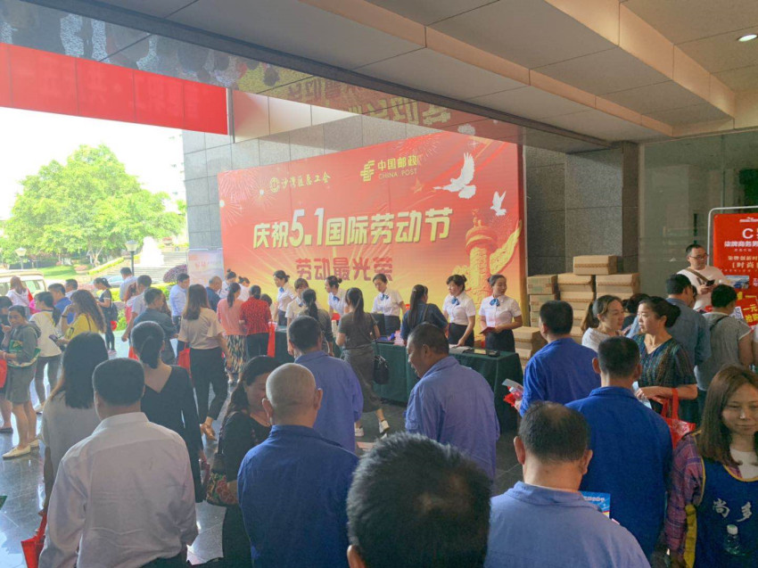 场外,由沙湾区总工会、中国邮政集团公司乐山市沙湾区分公司联合开展了乐享工会衣、食、住、行、医普惠服务现场体验活动。