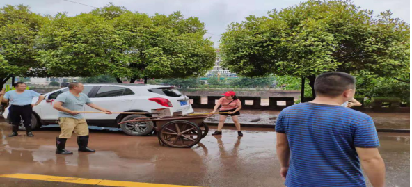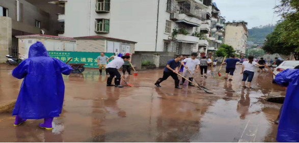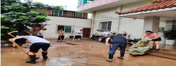 清淤现场组织有序,有人负责冲淤泥,有人负责铲淤泥,有人负责扫污水,有人负责倾倒淤泥。全体干部职工冒雨积极投入抗洪抢险清淤工作中,尽管雨水和汗水湿透了衣服,大家浑然不顾,用实际行动践行共产党员的基本职责。