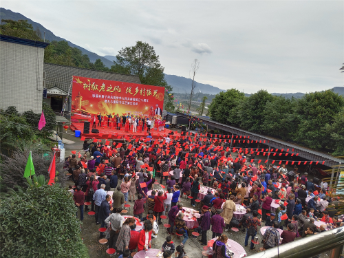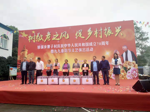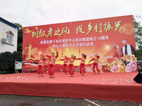 为进一步弘扬尊老敬老、爱老助老的优良作风,促进良好社会风尚的形成,助推乡村振兴的蓬勃发展,丰富广大老年朋友的精神文化生活。10月7日,由沙湾区总工会牵头主办的“树敬老之风 促乡村振兴”—轸溪乡寨子村庆祝中华人民共和国成立70周年暨九九重阳节文艺演出活动,在轸溪乡政府院坝隆重举行。全村400余名60周岁以上的老年朋友欢聚一堂,共度重阳佳节。